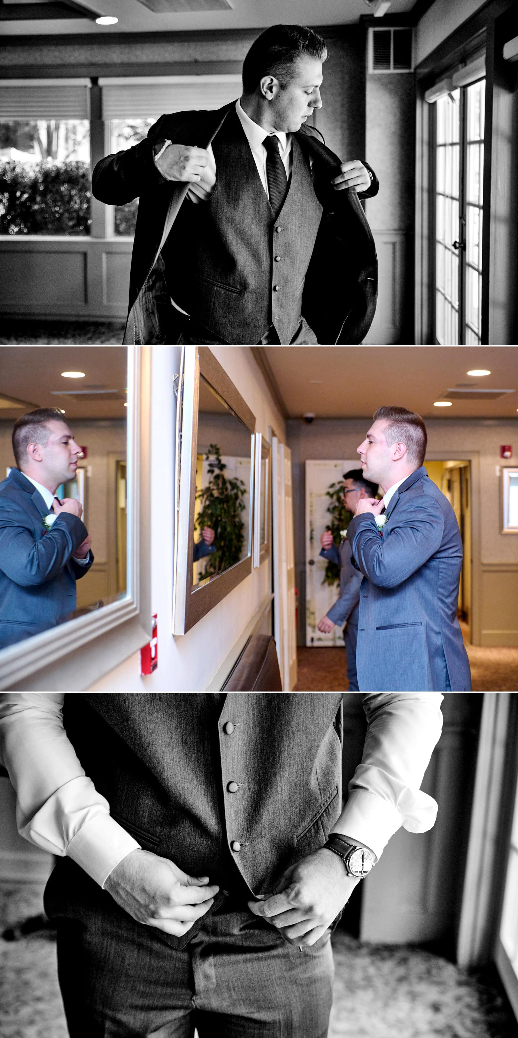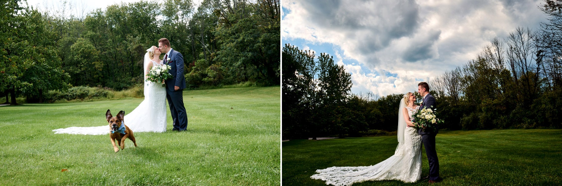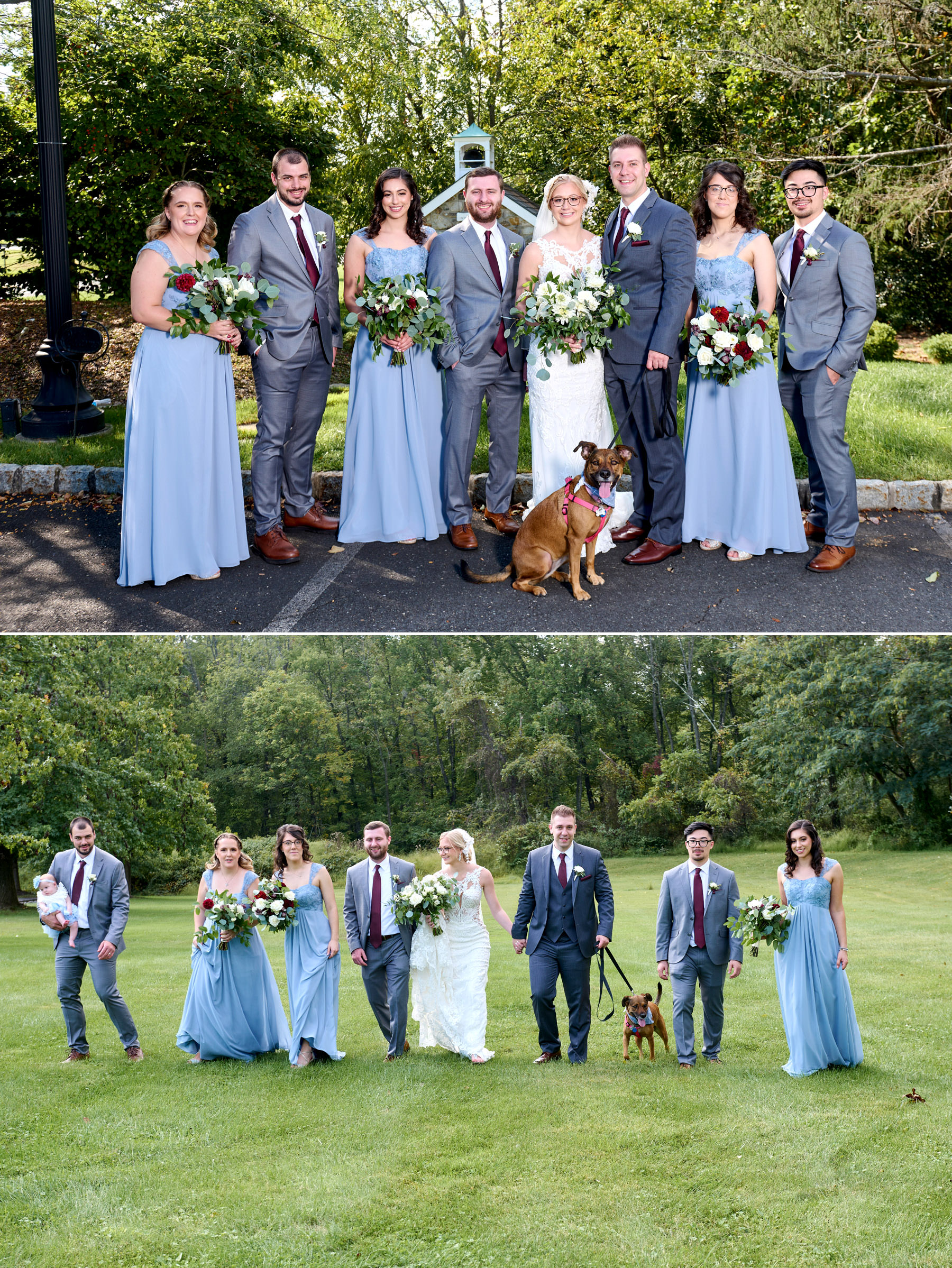 Kaitlin and Patrick celebrated their wedding day at The Farmhouse in Hampton NJ earlier this fall. These two had a picture perfect day to get married and they even brought along their pup to be in some of the photos! Since everything was being held at The Farmhouse, we started the day with the couple as they were finishing up the final touches of hair and makeup. From there, it was right into their first look and bridal party photos. When all of the day’s events are at one location, doing a first look really allows you to be fully present and enjoy all the aspects of a wedding day AND have fun with the photo portion of the day as well!