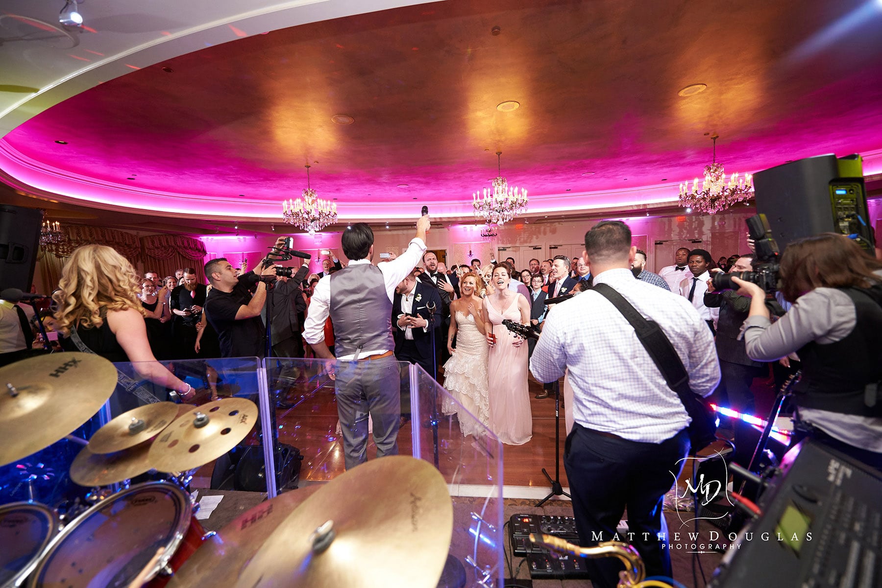 Now, every wedding has entertainment. However, when you’re a musician yourself like Lou is, you get an amazing band for the reception. Not only that…you surprise your new wife with an acoustic wedding song. If that’s not enough for you…you surprise everyone by having YOUR band mates take over the stage and rock out. Definitely one of the more memorable experiences we’ve had in recent years. As you can see below, keeping people on the dance floor all night long was NOT a problem!
